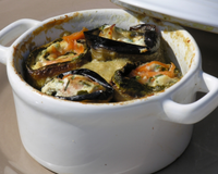 Disposer dans les cocottes deux rouleaux d'aubergines et deux rouleaux de courgettes farcis (un de chaque légume avec du saumon et l'autre avec du haddock).