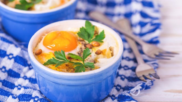 Verser dans les cocottes la crème d'endives, casser un oeuf par cocotte, couvrir et mettre au four à 180° pendant 12 à 15 mn. Servir aussitôt.