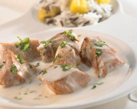 Accompagnez de riz long grain garni de dés d'ananas.