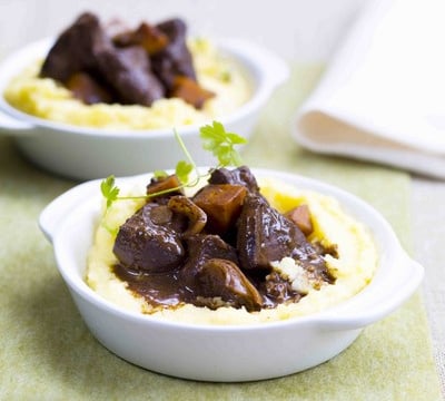 Réchauffer doucement le cœur dans la sauce et le servir bien chaud avec la polenta, poivrer.