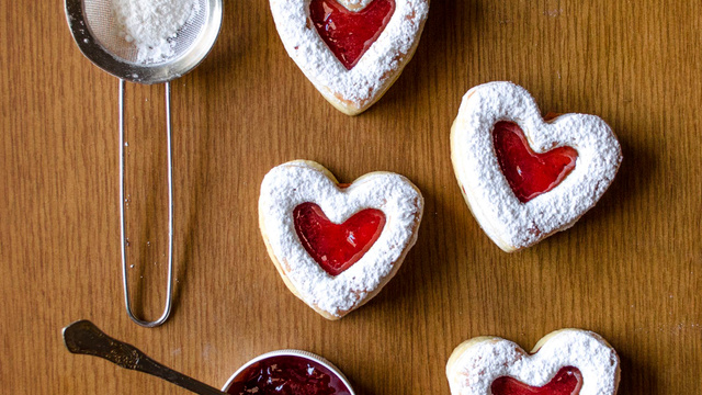 Des sablés en forme de coeur et à la confiture de fraises, ils feront des heureux au goûter.