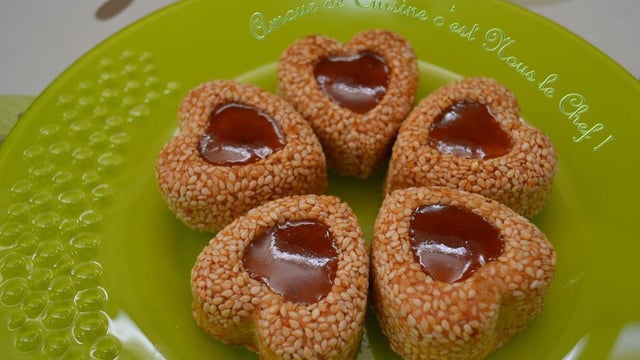 Trempez les boules dans du blanc d'oeuf puis dans les gaines de sésames et tassez-les dans les moules (voir photo).