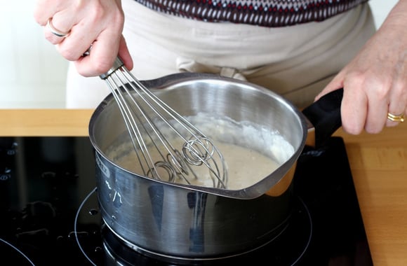3Toujours hors du feu, mélangez à l'aide d'un fouet. Le mélange doit être bien lisse.