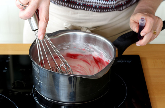 4Ajoutez quelques gouttes de colorant alimentaire et mélangez jusqu'à obtenir la couleur désirée. En refroidissant, les couleurs deviennent un tout petit peu plus intenses.