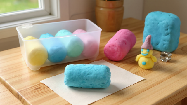 Votre pâte à modeler se conserve au frais dans une boite hermétique pendant plusieurs semaines.