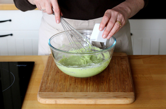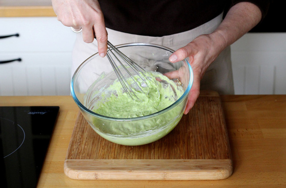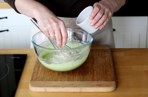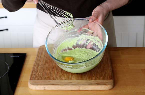 Ajoutez l'oeuf et mélangez, toujours au fouet.