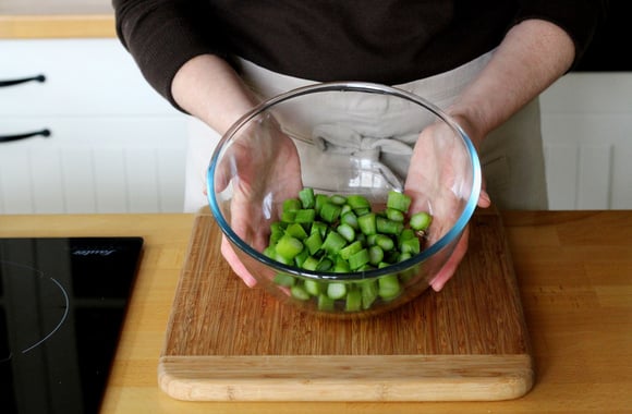 Dans l'eau bouillante, plongez les tiges coupées en tronçons d'1 cm pendant 8 minutes. Ils doivent être tendres.