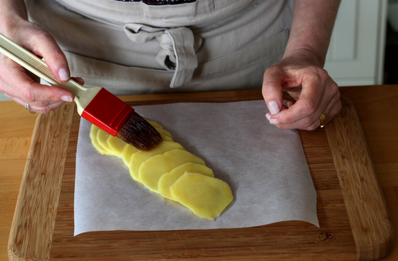 4Badigeonnez la bande de pommes de terre avec le beurre fondu.