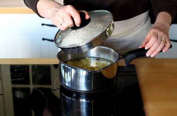Pelez les pommes de terre puis passez-les rapidement sous l'eau froide.