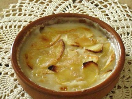 Délicieux petit gratin de pommes au lait de coco.