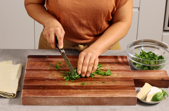 5Hachez finement les épinards.