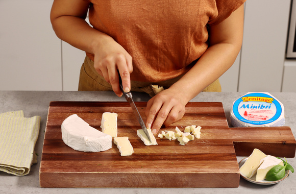 4Coupez le Minibri en petits dés jusqu'à l'écraser.