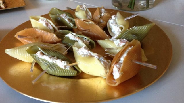 Idéal pour l'apéritif ou en entrée. Pâtes farcies saumon et crevette.
