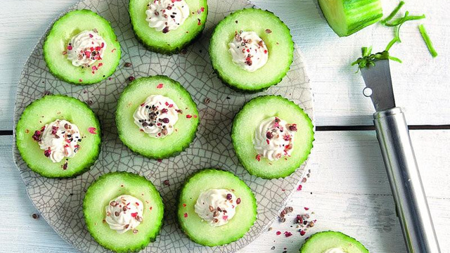 Découvrez un apéritif frais et gourmand grâce à un subtil mélange de baies, de poivres et de Chavroux® associé au croquant du concombre.