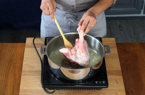 2Mettez le beurre dans une cocotte et faites dorer les souris d'agneau de tous côtés.