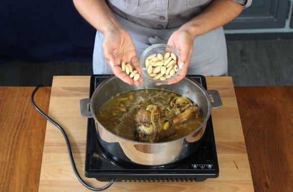 6Au bout de ce temps, ajoutez les amandes, mélangez et laissez cuire encore 30 min.