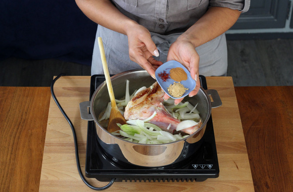 3Ajoutez les oignons et les épices.