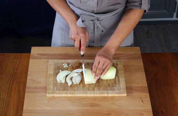 1Emincez les oignons.