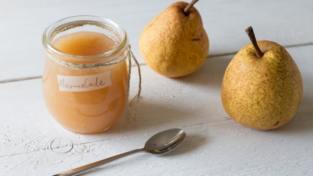 La confiture de poires demande plus de cuisson que les autres; on peut donc employer moins de sucre : 750 g par kg de fruits épluchés. Le fait de retourner les pots le temps du refroisissement permet de faire le vide d'air et d'aseptiser évitant ainsi les moisissures.