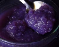 Une version de confiture de pommes de terre d'un pourpre profond donnant la réelle envie d'y plonger la petite cuillère, tout simplement vanillée, elle est délicieuse, à décliner comme bon vous semble, dans vos yaourt, en glace ou dans un gâteau laissez parler votre créativité !