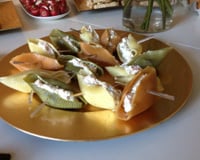 pendant ce temps couper la mozarella en morceaux, l ecraser dans un saladier avec ricotta et mascarpone.