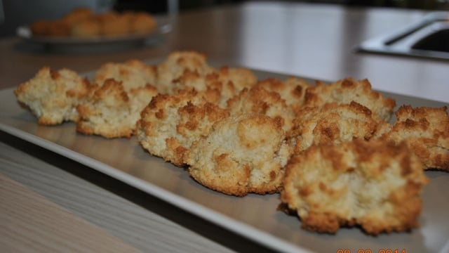 Déposez des cuillerées à soupe de pâtes sur les plaques, en les espaçant de 2,5cm. Faites les dorer au four plus ou moin 2minutes. Laissez le congolais refroidir sur une grille!