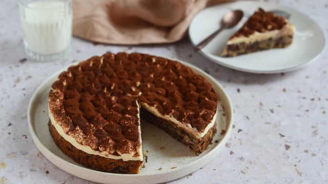 Le cookie tarte tiramisu est une fusion créative de deux desserts emblématiques, le cookie et le tiramisu italien. Cette délicieuse gourmandise marie les textures croquantes d'un cookie aux saveurs riches et les saveurs onctueuses du tiramisu. La base croustillante du cookie est garnie d'un mélange crémeux de mascarpone et saupoudrée de cacao en poudre pour rappeler le célèbre dessert italien. C'est une invitation à un voyage gustatif exquis, une interprétation innovante et gourmande de deux classiques qui séduira les amateurs de sucreries sophistiquées.