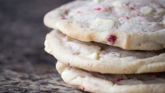 Détaillez le chocolat blanc en petits morceaux (c'est plus facile si le chocolat est légèrement mou) et ajoutez les morceaux à la pâte, ainsi que les cranberries.