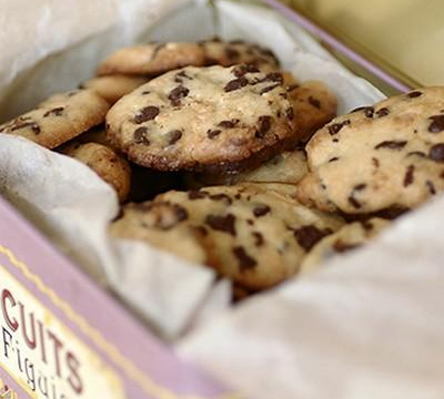 Au bout de ce temps, allumez le four à 180° (th.6). Retirez le papier film du boudin de pâte et découpez des tranches d'1/2cm d'épaisseur. Posez-les sur une plaque à pâtisserie, enfournez pour 15min environ. Les cookies doivent êtres juste dorés.