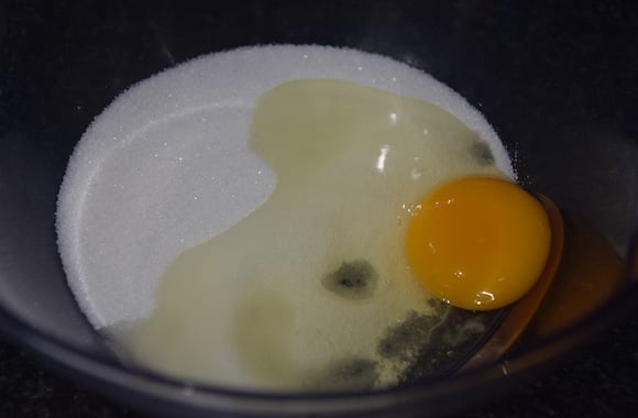 1Dans un saladier, blanchir le sucre fin avec l'oeuf.