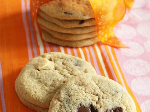 Pour redonner tout leur moelleux à des cookies préparés la veille, passez-les au four préchauffé à 5-6 (150°) pendant deux minutes. Ce petit truc vaut également pour d'authentiques cookies Laura Todd auxquels vous souhaitez redonner tout leur moelleux et leur fondant avant dégustation. D'autre part, conservez toujours vos cookies à température ambiante dans une boîte bien fermée ; ne les placez pas au réfrigérateur.Si vous le souhaitez, vous pouvez ajouter une poignée de noix ou de noisettes concassées, de raisins secs, de noix de coco râpée... pour personnaliser vos cookies !
