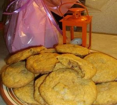 Cuisez peu de temps 8 min maxi à four chaud et sorter les cookies du four encore tout mou, ce qui leur permettra de garder le moelleux en refroidissant, car trop de cuisson et ils seront dur.
