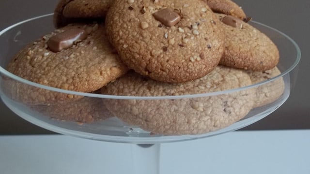 Faites des boules à l'aide de votre main, et aplatissez les légèrement enfournez entre 12 et 14 min (il faut qu'ils restent moelleux).