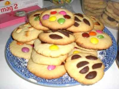 Faire des petites boules aplaties et les déposer sur la plaque du four. Déposer les pépites à volonté.