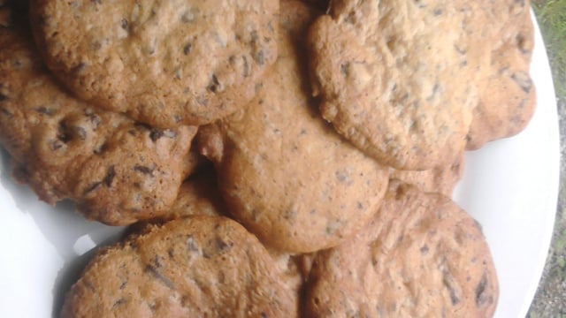 Hacher le chocolat grossièrement, et mélanger le beurre mou avec les deux sucres et l'oeuf.