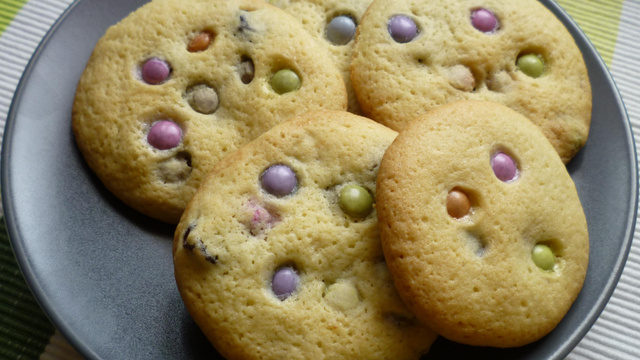 Ajouter les raisins secs et les smarties. Mélanger à la main.