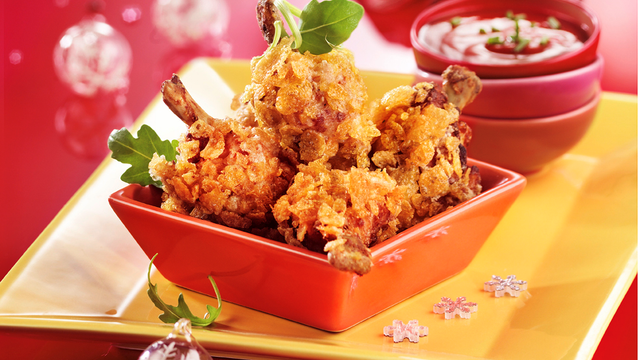 Rouler les CoQ'Ailes Natures dans la farine puis dans une assiette avec les œufs entiers battus salés et un peu d'eau. Égoutter puis les rouler dans des cornflakes concassés. Faire revenir dans une poêle dans 2 cm d'huile sur chaque face. Les égoutter sur du papier absorbant. Déguster les CoQ'Ailes encore chauds avec le ketchup-maison !