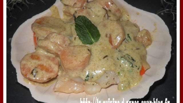 Des noix de saint jacques fraîches avec une sauce au cumin et des rondelles de carottes. Un régal pour les papilles ! L'association carotte-cumin n'est pas une nouveauté dans la cuisine, orientale notamment...MAIS avec des Saint Jacques... C'est la délectation assurée !