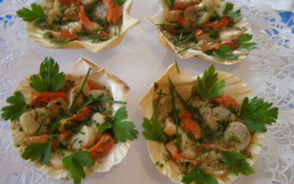 Les escalopes peuvent être servies disposées dans chaque coquille.