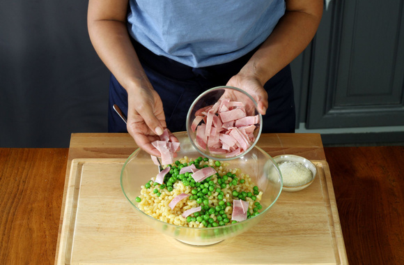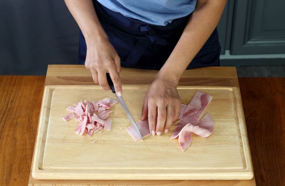 2Coupez le jambon en petites lamelles et réservez.