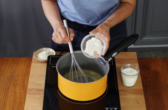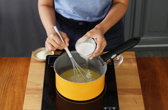 4Ajoutez le lait tout en mélangeant pour éviter la formation de grumeaux.