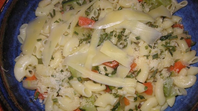 Servir dans des assiettes creuses. Ajouter des copeaux de parmesan coupé avec un économe
