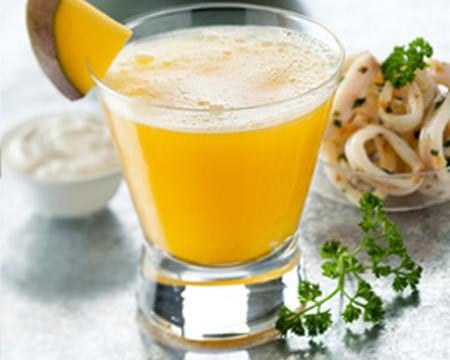 Dans un verre à jus de fruit, mélanger 1/4 de jus de mangue avec 3/4 de Cordon Negro. Décorer d''une tranche de mangue. Déguster. - 2