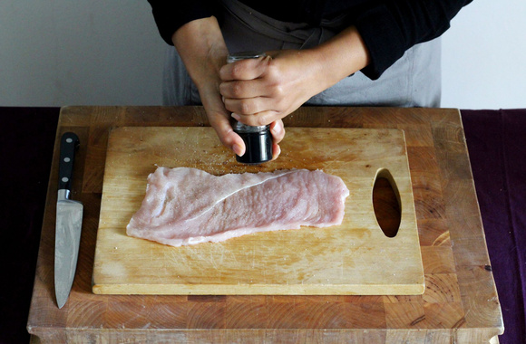 1Etalez les escalopes sur un plan de travail, salez et poivrez.