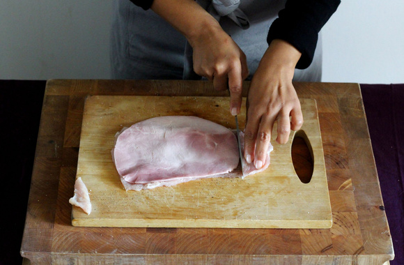 3Coupez le sur-plus d'escalope qui dépasse et réservez-le.
