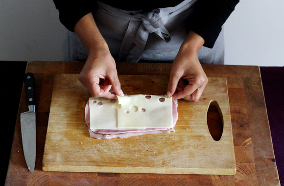 4Placez une ou deux tranches de fromage sur le jambon.