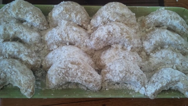 Donner une forme de croissant de lune en les modelant avec les doigts. Mettre les cornes de gazelles sur une plaque de four avec une feuille de papier sulfurisé. Enfourner pendant environ 20 min en surveillant.