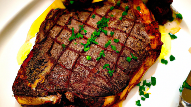 Une côte de boeuf cuite au barbecue et sa sauce choron.