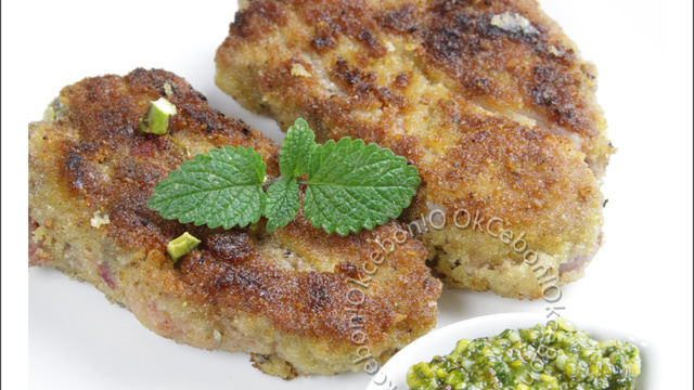 Servir de suite les côtelettes accompagnées de quelques pistaches concassées et du pesto.