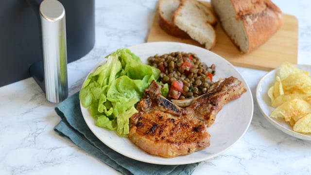 Réglez la température à 190°C et faites cuire les côtelettes de porc pendant 15 minutes.